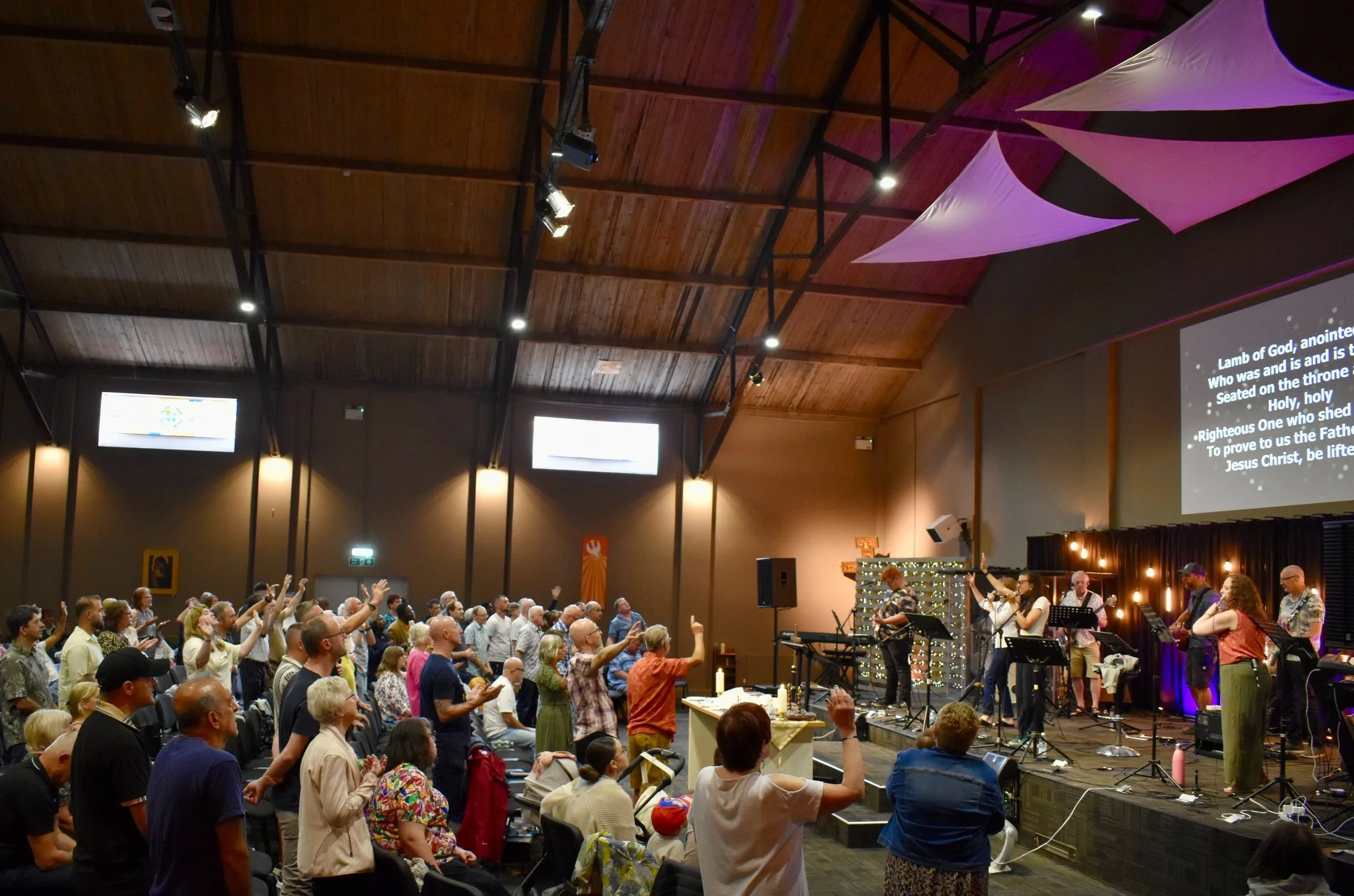 Expect the service to start with a time of worship, followed by communion, notices about what is going in church, a short relevant and biblically based message and a time for response and prayer before closing for coffee and more socialising.